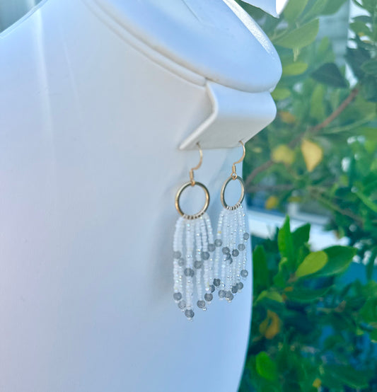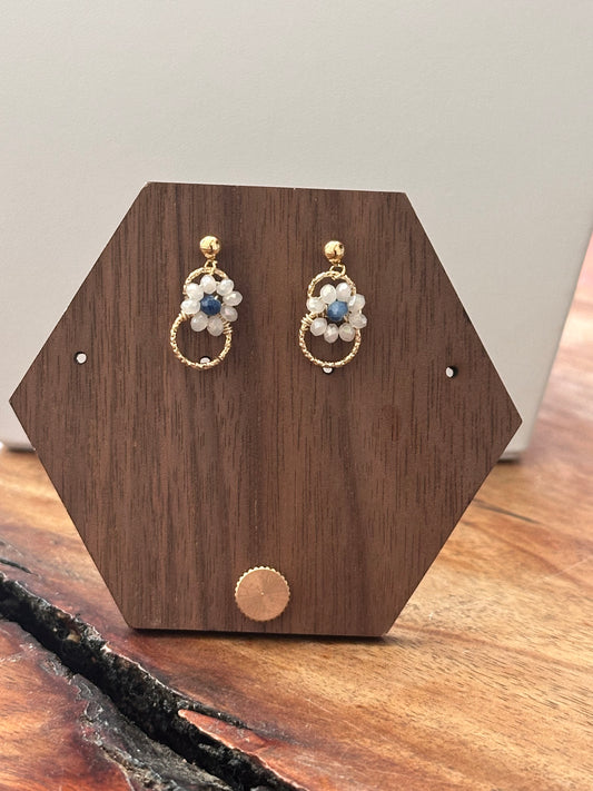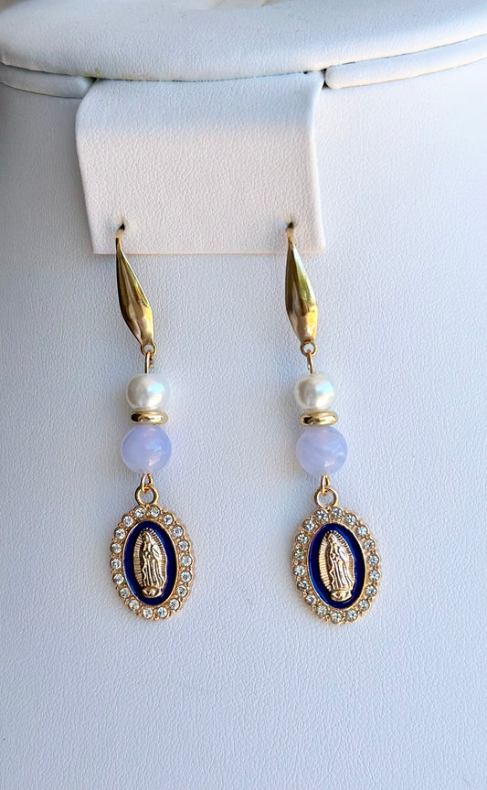 Virgen de Guadalupe Dangle and Drop Earrings in Blue and Ivory