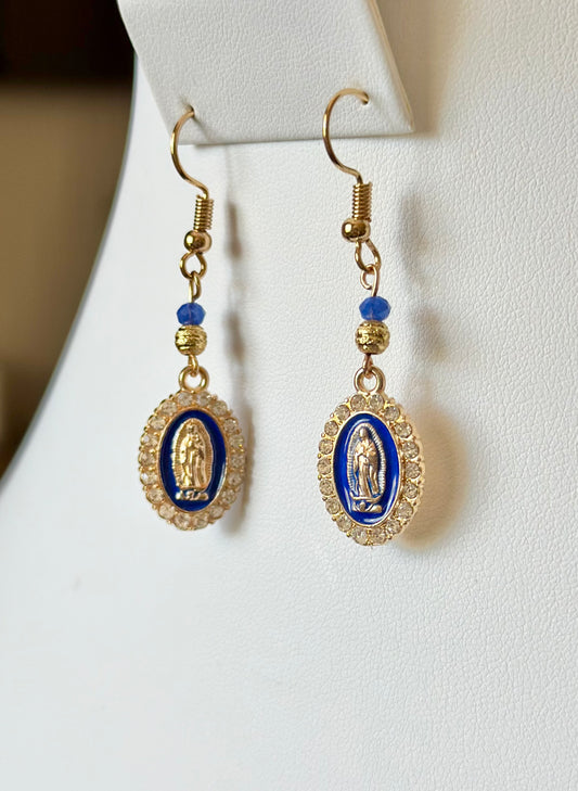 Virgen de Guadalupe Dangle and Drop Earrings in Blue